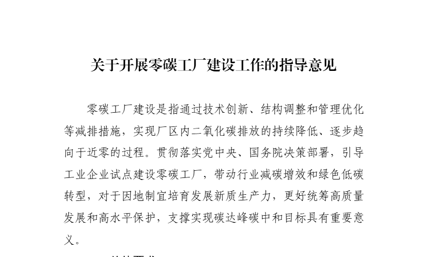 五部門印發《關于開展零碳工廠建設工作的指導意見》的通知
